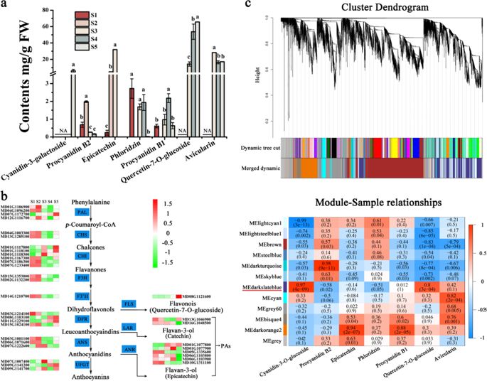 2020年2月1日,Horticulture Research在线发表了MS88官方网站姚允聪教授/田佶教授团队题为MdMYB8 is associated with flavonol biosynthesis via the activation of the MdFLS promoter in the fruits of Malus crabapple 的研究论文。该研究对五个不同发育时期的观赏海棠品种‘火焰’果皮进行转录组测序,利用KEGG pathway分析发现在果实发育过程中植物激素参与调节黄酮醇的生物过程。通过WGCNA和酵母单杂交试验筛选发现MdMYB8可能参与调控黄酮醇生物合成,并进一步通过在苹果愈伤组织中过表达和干扰MdMYB8基因,进行了功能验证。最终发现MdMYB8通过调控MdFLS 基因的表达,调控黄酮醇生物合成。