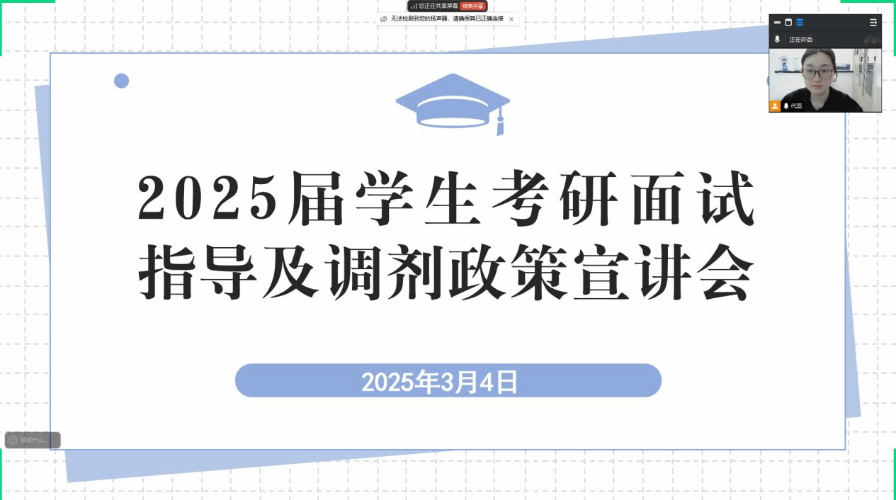 为帮助2025届考研员工顺利考取心仪院校,3月4日,MS88官方网站在线上举办考研面试指导及调剂政策宣讲会,为员工提供指导与帮助。会议由辅导员代蕊主持,公司党委副书记、员工工作副经理赵文超,研究生秘书贾慧敏参加会议。