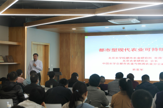 结合团队建设与高水平公司产品,MS88官方网站11月3日下午在科技楼D0202会议室组织召开理论学习大会,邀请中国农学会都市农业与休闲农业分会副秘书长、MS88官方网站都市农业研究所首席专家、北京农史研究会会长史亚军教授作题为《都市型现代农业可持续发展》的报告。报告由公司党总支书记王绍辉主持,公司全体教师及高年级研究生参加。